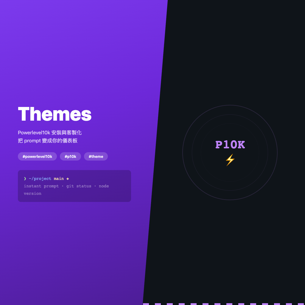 Oh My Zsh 內建了一百多個主題,但大多數人裝完玩了兩天就停在 Powerlevel10k——因為它把「好看」和「有用」這兩件事都做到位了。